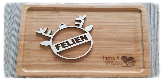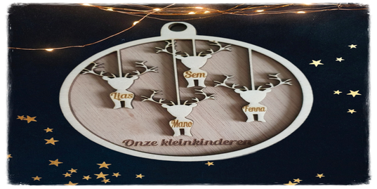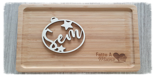 Houten cirkel met naam en kaars, afgewerkt met droogbloemen