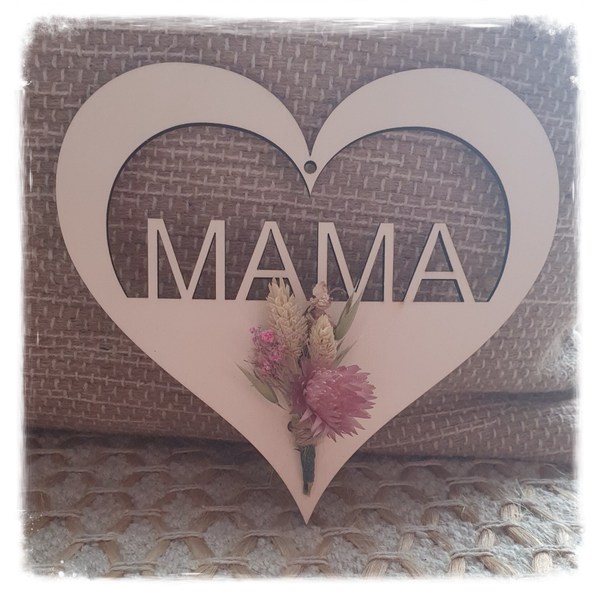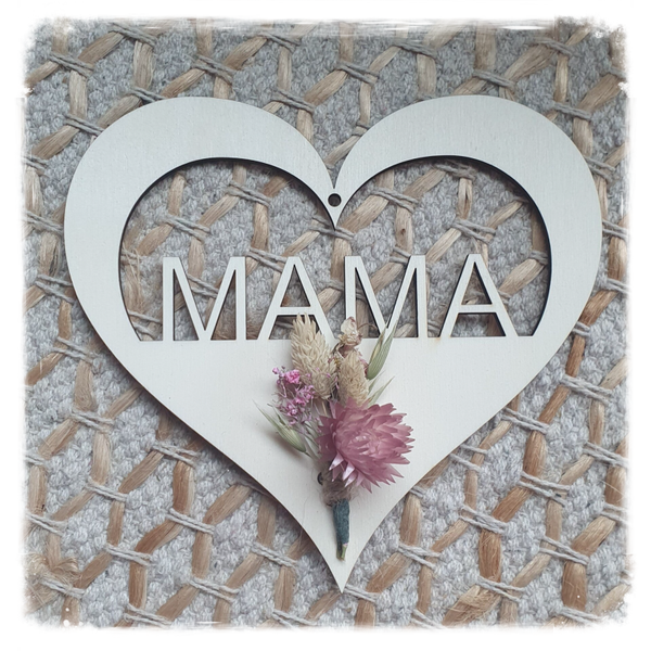 Hartje om op een mooi plekje in huis op te hangen. Met hoofdwoord naar keuze en droogbloemetjes.
