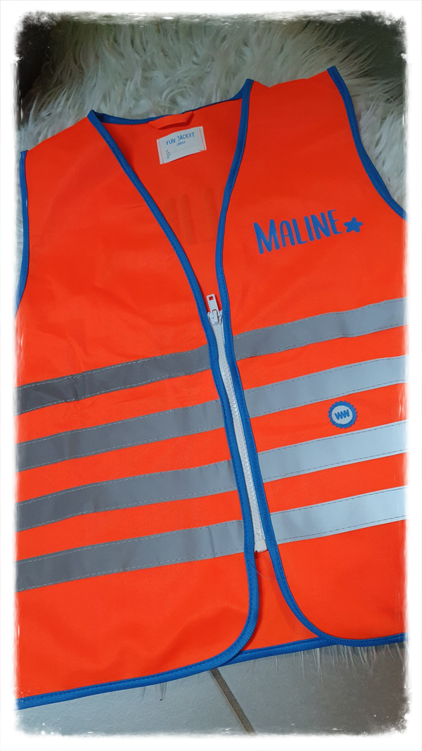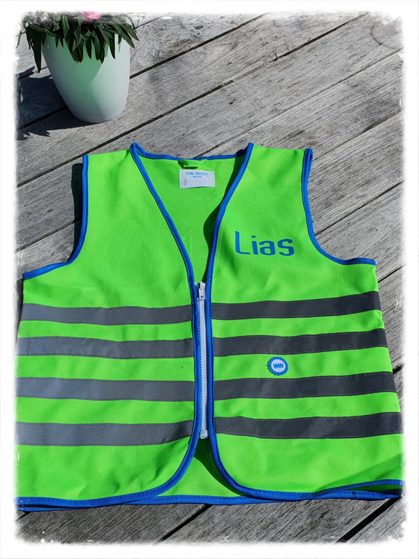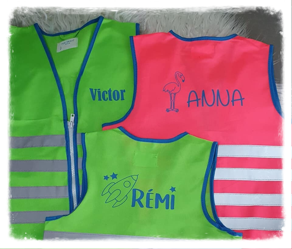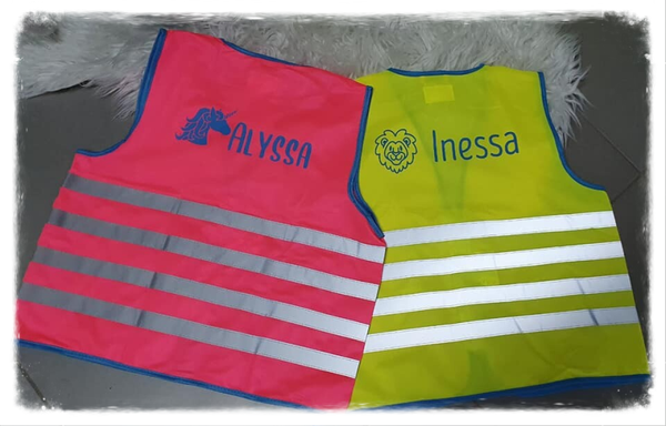 Fluohesje (met rits) met eigen naam en afbeelding.