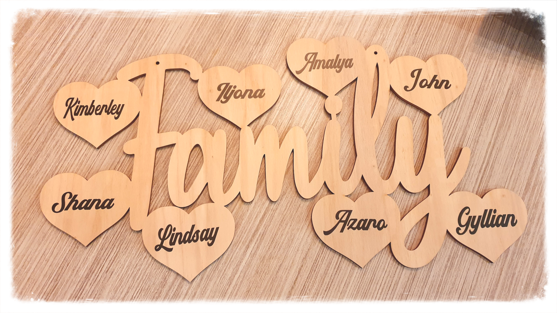Prachtige houten hanger (in naturel, wit of zwart) met alle namen van jouw familie. De namen worden bedrukt op de hartjes. Aantal hartjes naar keuze. Bij meerdere hartjes graag contact opnemen met ons.