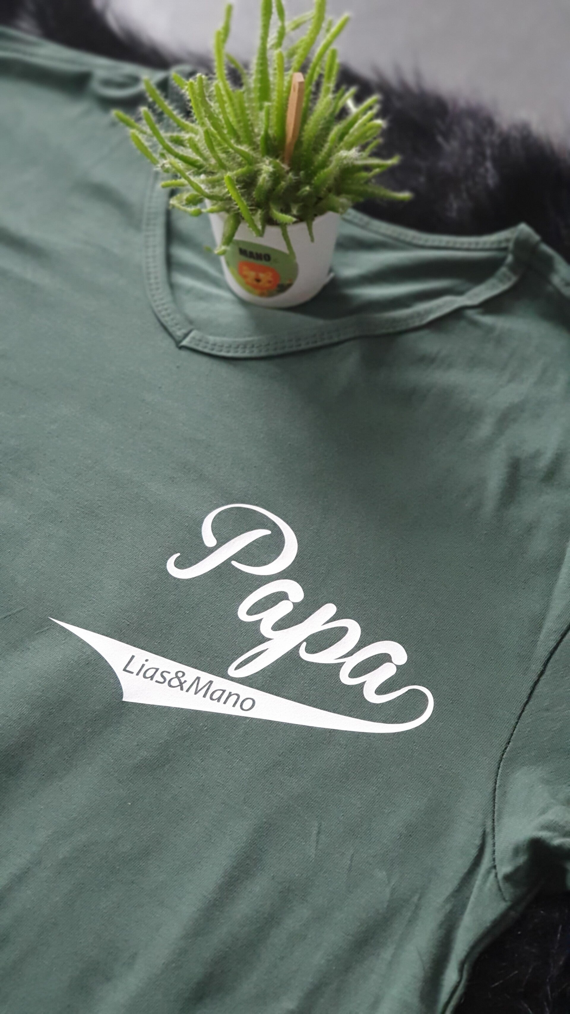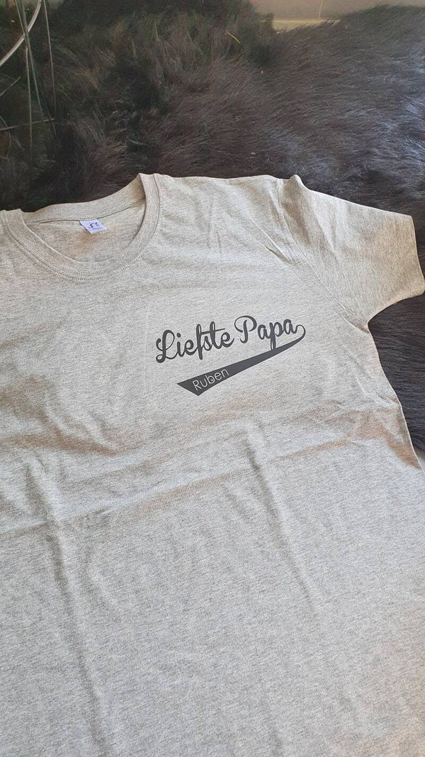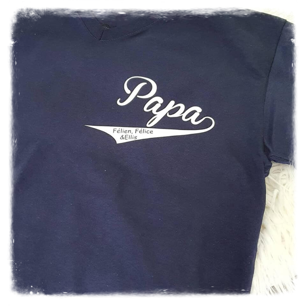 Deze t-shirt heeft de opdruk 'papa' met de namen van zijn kinderen in. Een unieke t-shirt waar elke papa wel mee wil pronken.