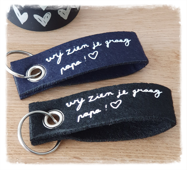Deze vilten sleutelhangers met naam of tekst naar keuze zijn een uniek geschenk door het eigen handschrift. Maar natuurlijk zijn ze ook heel leuk aan je eigen sleutelbos.