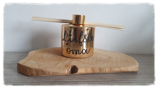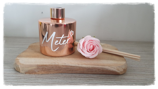 een gepersonaliseerde geurdispencer (groot) in goud, rosé goud of wit met rosé dop.