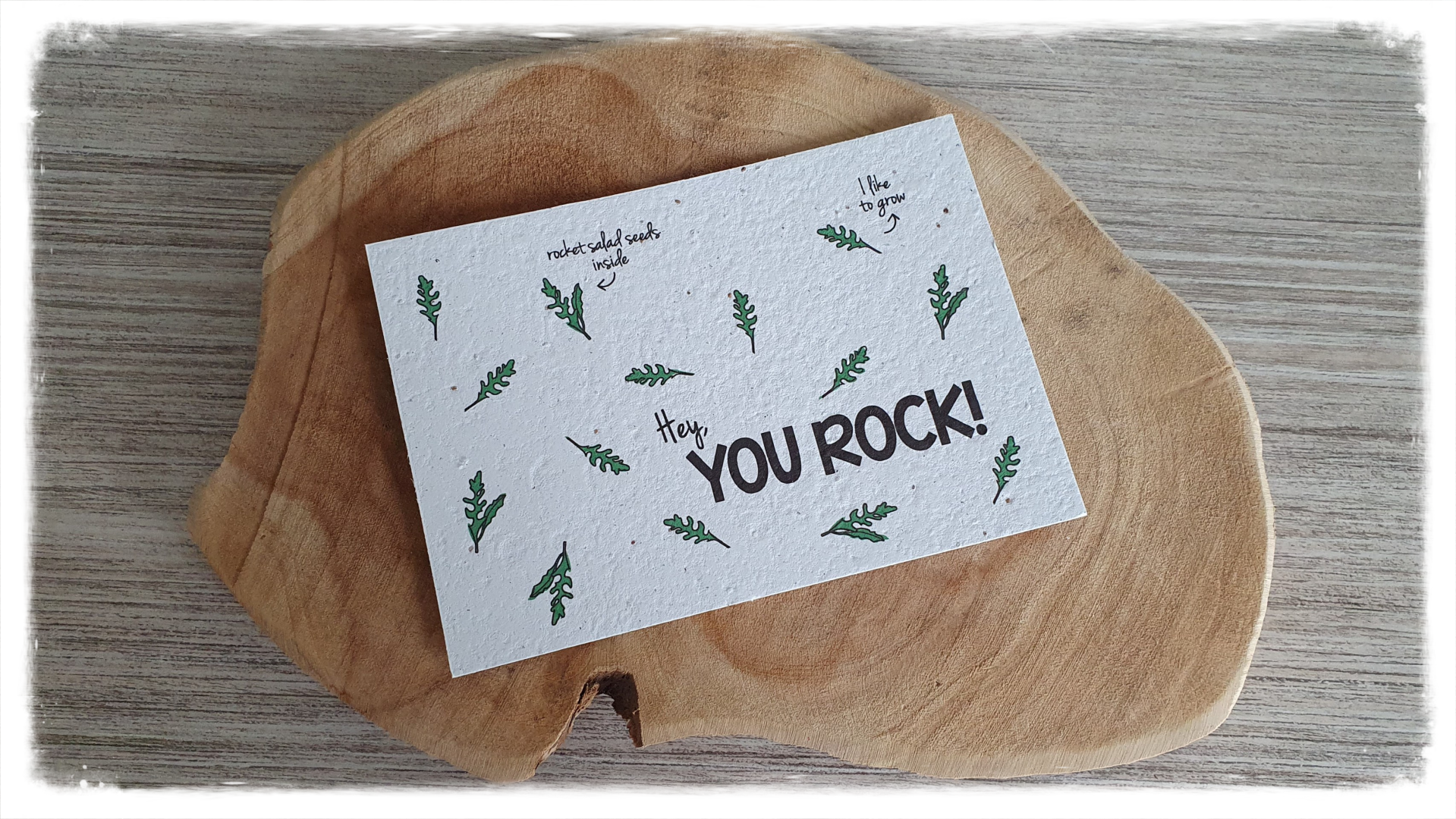 Deze bloeikaart stop je niet bij het oud papier als je er op uitgekeken bent, maar geef je een plekje in de grond. Geef voldoende water en voilà, binnen de kortste keren verschijnt er een verse bos rucola waarmee je heerlijk gezonde salade in elkaar draait. Deze kaart maakt dus niet alleen happy, maar ook nog eens healthy!