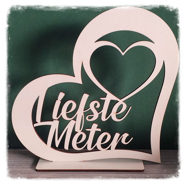Hartje met tekst uitgesneden op voet ,diameter 25 cm, versiert met droogbloemen. Liefste ... is aan te passen naar wens.