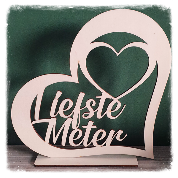 Hartje met tekst uitgesneden op voet ,diameter 25 cm, versiert met droogbloemen. Liefste ... is aan te passen naar wens.