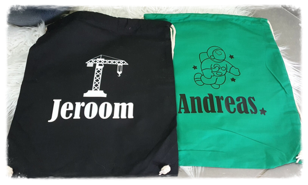 Deze katoenen sport- en turnzak kan je gebruiken op school, voor je sportuurtje, als tasje bij een uitstap,... Je vindt hem snel terug door je gepersonaliseerde tekening en/of naam.
