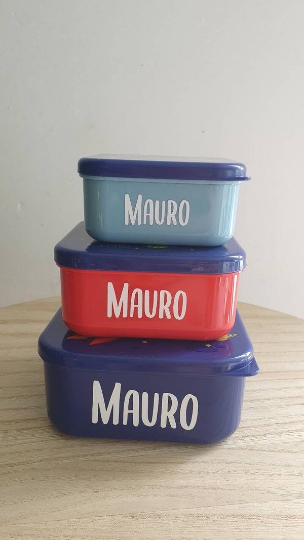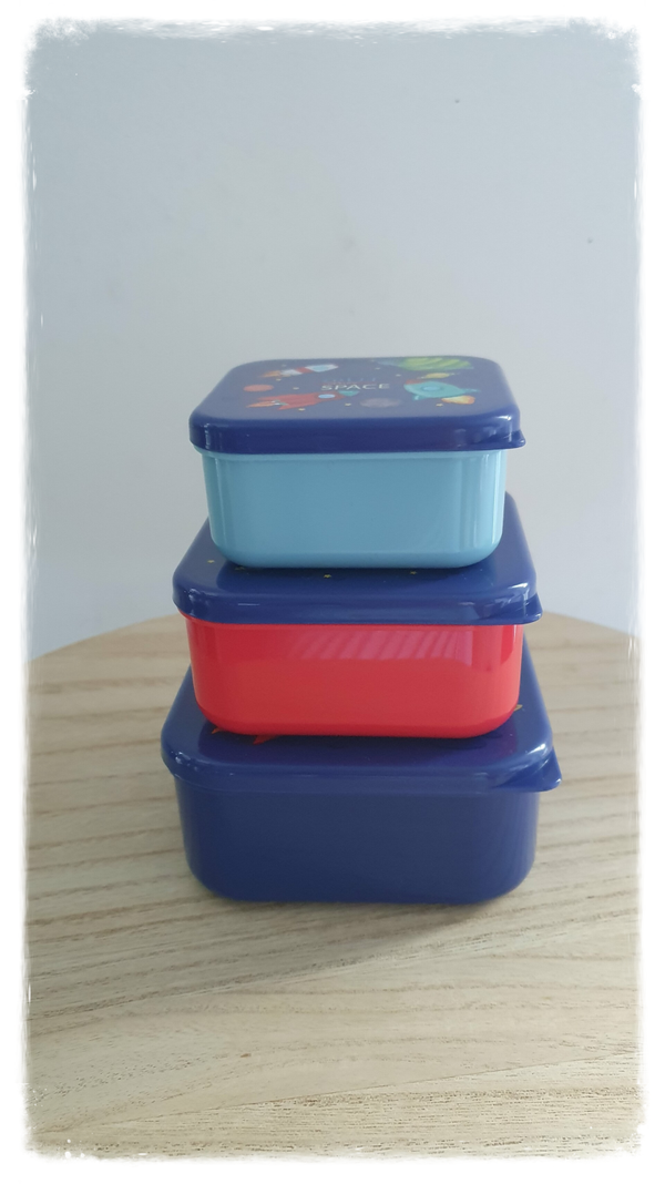 Setje van 3 leuke gepersonaliseerde snackdoosjes met thema raket.