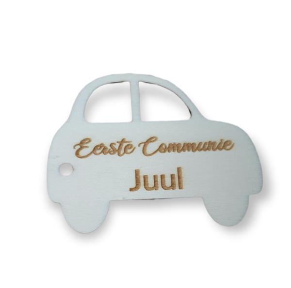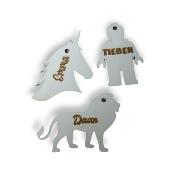 De sleutelhangers zijn ongeveer 50 mm x 80 mm, kan groter en kleiner afhankelijk van de vorm en worden langs 1 zijde gegraveerd.