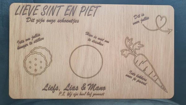 Om de Sint nog beter te helpen, is dit plankje ook nog eens gepersonaliseerd!
