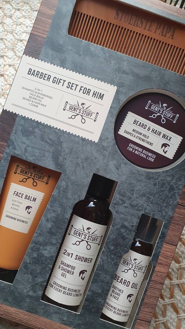 Deze set bestaat uit een compleet verzorgingspakket en bevat onder andere wax, baardolie en een gepersonaliseerde kam