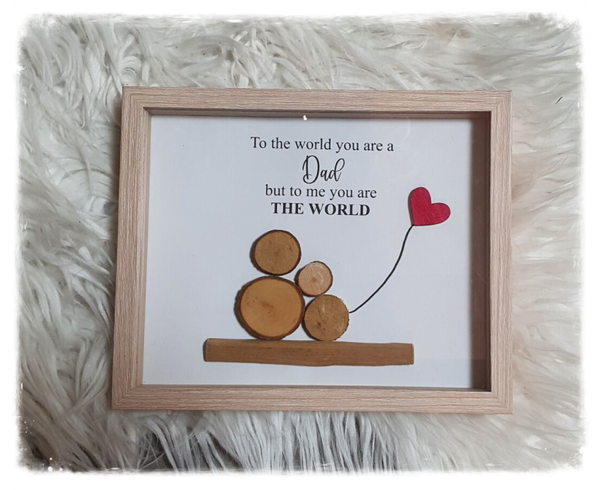 Mooie houten kader met tekstje voor de liefste papa. Afgewerkt met houten schijfjes om papa en kind voor te stellen. Je kan ook kiezen voor meerdere kindjes (tot 3).