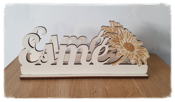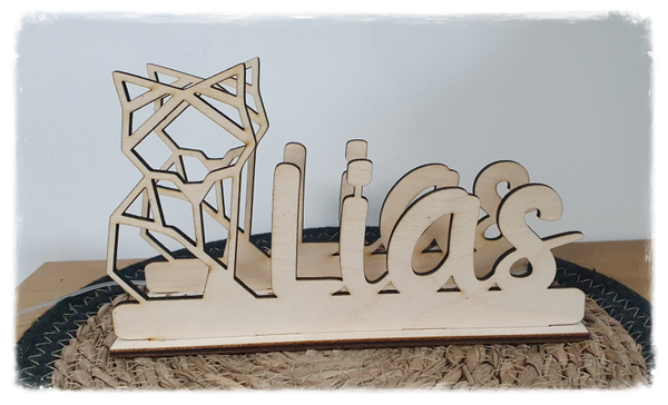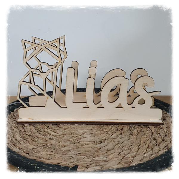 De naam is gesneden uit hout en wordt in 3 delen verzonden voor de veiligheid. Deze zijn makkelijk in mekaar te zetten met houtlijm of secondenlijm. Ook zonder lijm, blijft deze staan.