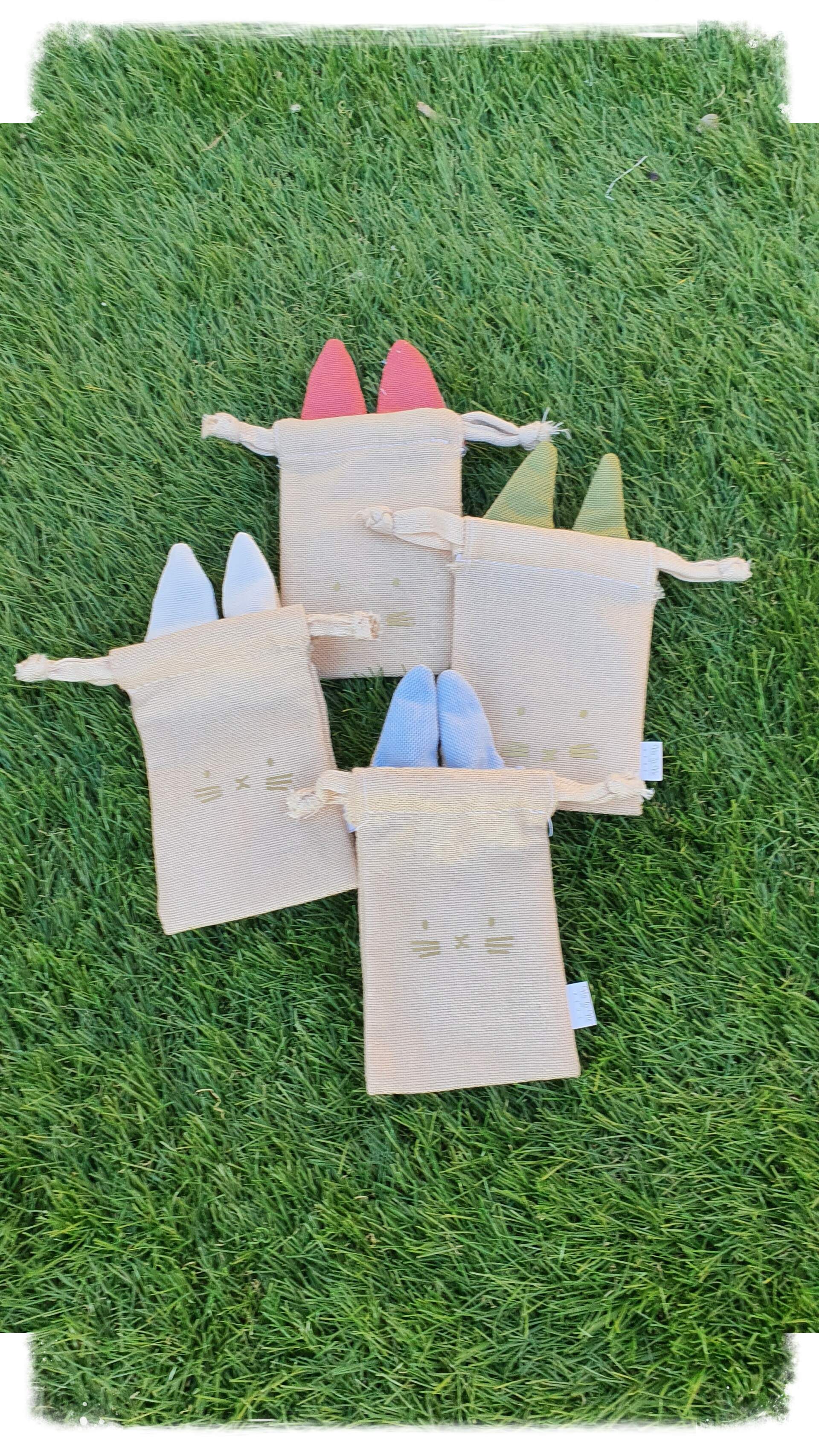 Linnen zakje konijn 12.5x8cm met gezicht gedrukt voor snoepjes of paaseitjes.