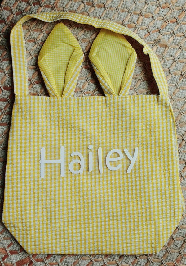 Prachtige paaszak met oortjes en jouw naam. Leuk om alle eitjes in te verzamelen.