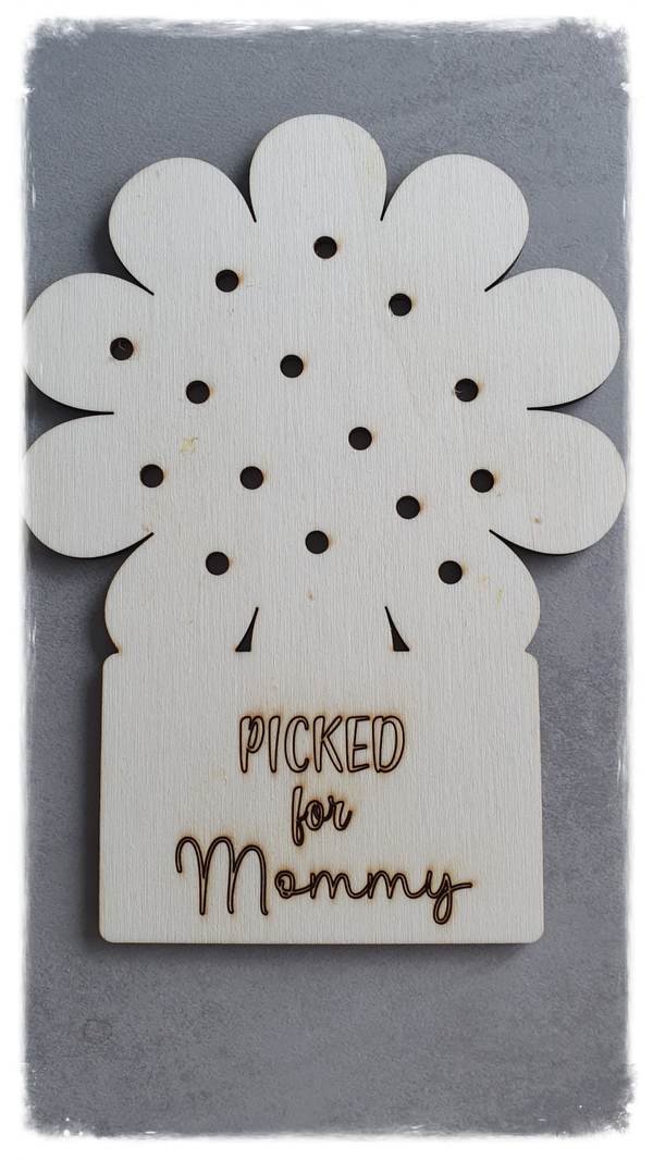 Verzamel een mooi geplukt boeketje, steek de stengeltjes in het plaatje en je hebt een mooi origineel geschenkje en staandertje!