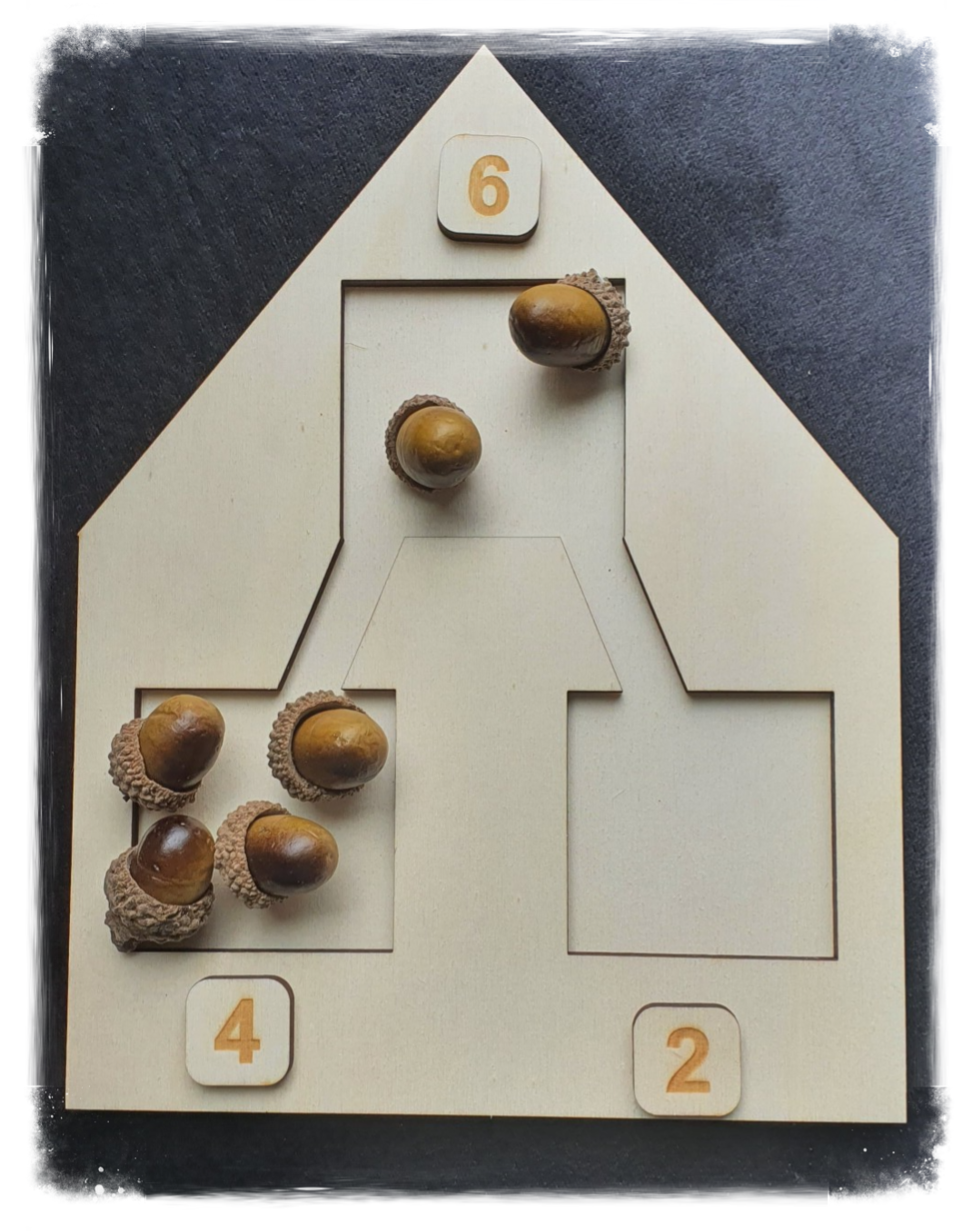 Maak het splitsen leuk en leerrijk met dit splitshuisje. Je gebruikt knikkers, natuurlijke materialen, schijfjes, ... om bovenaan een getal te leggen. Leg het juiste cijfer erbij en splits daarna het getal met jouw gekozen materiaal.