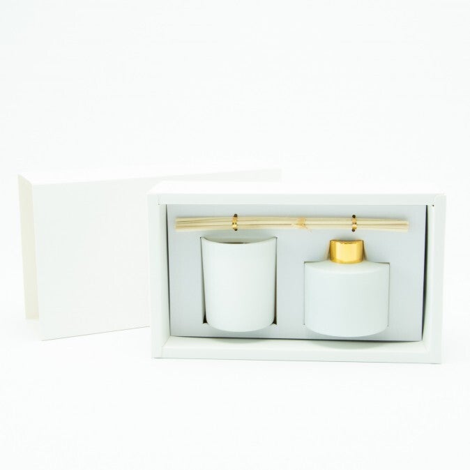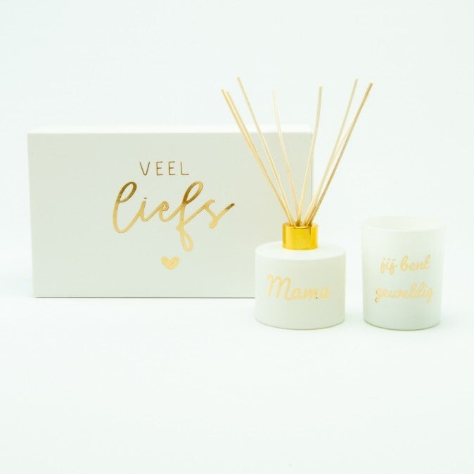 Luxegiftbox geurkaars & diffuser gevuld - wit of zwart